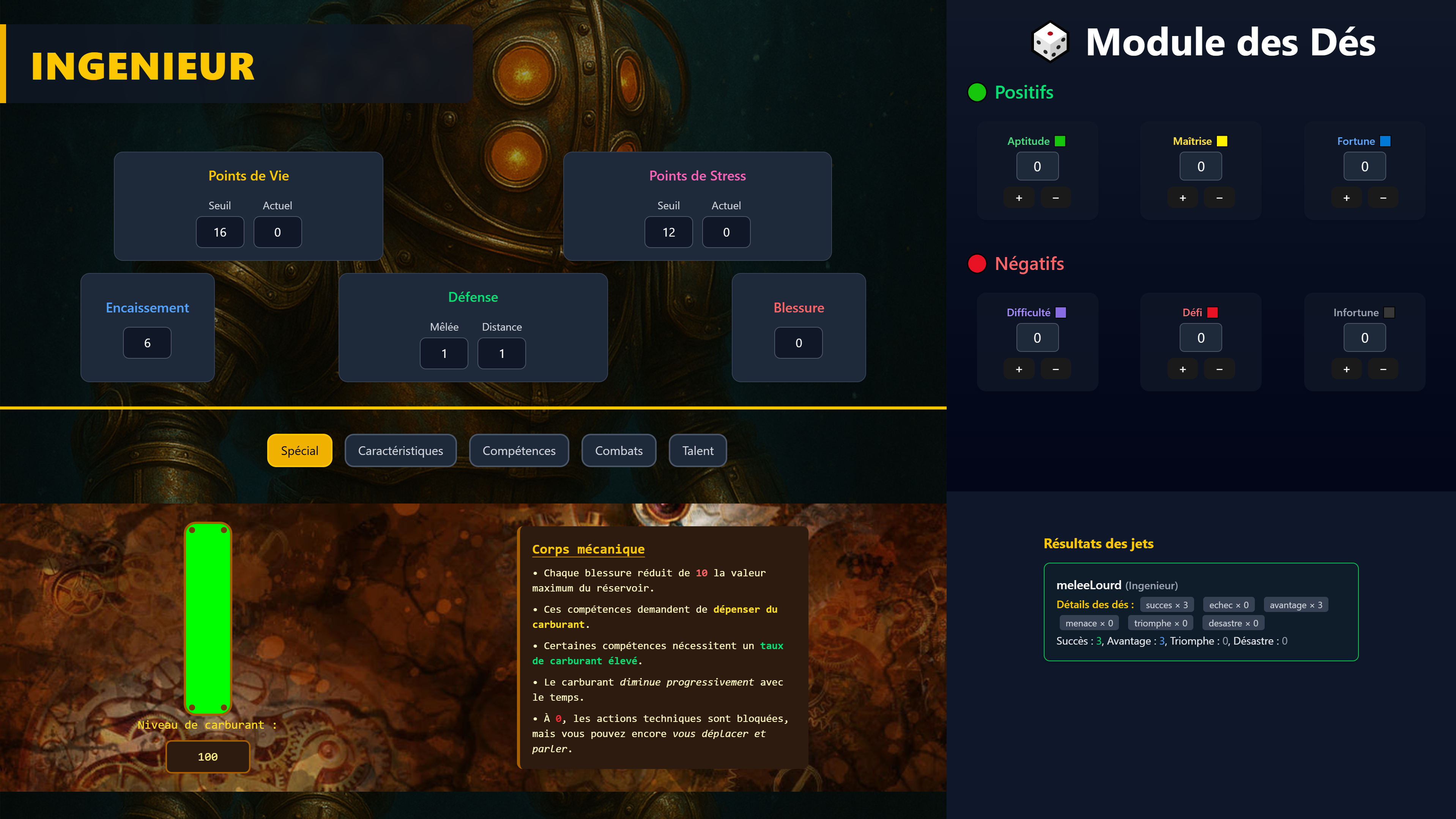 Un programme permettant le lancer de dé ainsi que la modification d'une fiche personnage sur une instance groupé